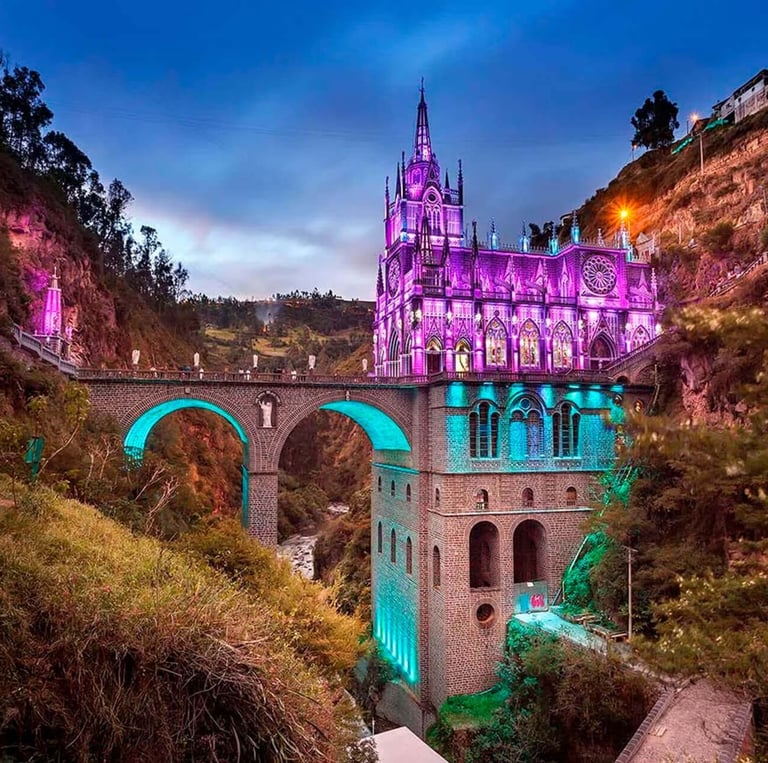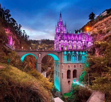 El Santuario de Las Lajas está en el cañón del río Guáitara, en Ipiales - Nariño, Colombia.
